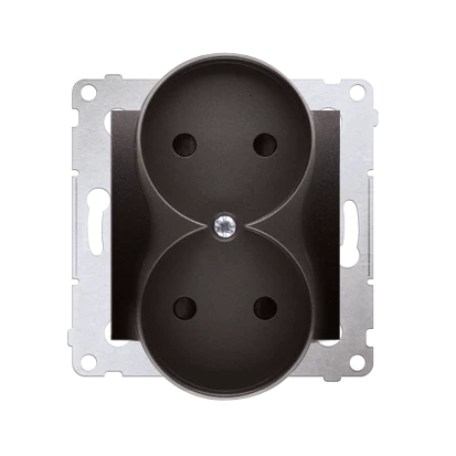 Gniazdo podwójne bez uziemienia przesłona styków, antracyt Simon54 o numerze katalogowym DG2MZ.01/48 w kategorii Gniazda podtynkowe, Gniazda instalacyjne. Produkt wyprodukowany przez markę KONTAKT-SIMON, seria SIMON 54.
