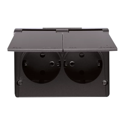 Gniazdo podwójne Schuko natynkowe bryzgoszczelne IP44 z przesłonami wersja skandynawska 16A, 250V~, zaciski śrubowe, antracyt, SIMON54 o numerze katalogowym EGSZ2NZB/48 w kategorii Gniazda podtynkowe, Gniazda instalacyjne. Produkt wyprodukowany przez markę KONTAKT-SIMON, seria SIMON 54.