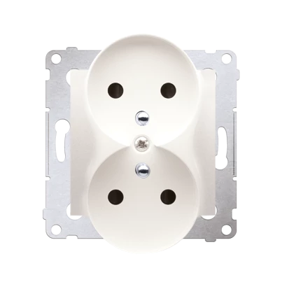 Gniazdo podwójne z uziemieniem przesłona styków, krem Simon54 o numerze katalogowym DGZ2MZ.01/41 w kategorii Gniazda podtynkowe, Gniazda instalacyjne. Produkt wyprodukowany przez markę KONTAKT-SIMON, seria SIMON 54.