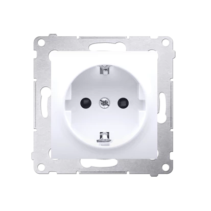 Gniazdo Schuko przesłona styków, biały Simon54 o numerze katalogowym DGSZ1Z.01/11 w kategorii Gniazda podtynkowe, Gniazda instalacyjne. Produkt wyprodukowany przez markę KONTAKT-SIMON, seria SIMON 54.