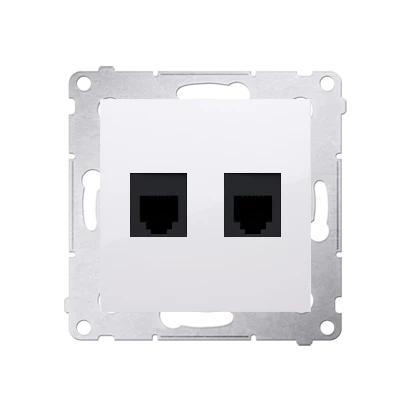Gniazdo telefoniczne RJ12 podwójne, biały Simon54 o numerze katalogowym DT2.01/11 w kategorii Gniazda teleinformacyjne, multimedialne, Łączniki i gniazda instalacyjne. Produkt wyprodukowany przez markę KONTAKT-SIMON, seria SIMON 54.