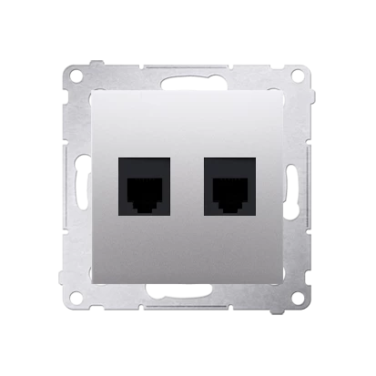 Gniazdo telefoniczne RJ12 podwójne, srebrny mat Simon54 o numerze katalogowym DT2.01/43 w kategorii Gniazda teleinformacyjne, multimedialne, Łączniki i gniazda instalacyjne. Produkt wyprodukowany przez markę KONTAKT-SIMON, seria SIMON 54.