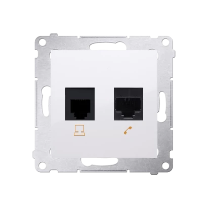 Gniazdo komputerowe RJ45 kategoria 5e + telefoniczne RJ12, biały Simon54 o numerze katalogowym D5T.01/11 w kategorii Gniazda teleinformacyjne, multimedialne, Łączniki i gniazda instalacyjne. Produkt wyprodukowany przez markę KONTAKT-SIMON, seria SIMON 54.