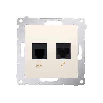 Gniazdo komputerowe RJ45 kategoria 5e + telefoniczne RJ12, krem Simon54 o numerze katalogowym D5T.01/41 w kategorii Gniazda teleinformacyjne, multimedialne, Łączniki i gniazda instalacyjne. Produkt wyprodukowany przez markę KONTAKT-SIMON, seria SIMON 54.