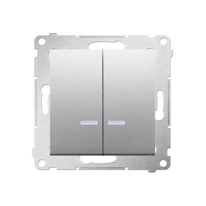 Łącznik świecznikowy z podświetleniem LED i do wersji IP44 10 AX, srebrny mat Simon54 o numerze katalogowym DW5BL.01/43 w kategorii Łączniki podtynkowe świecznikowe, Łączniki świecznikowe. Produkt wyprodukowany przez markę KONTAKT-SIMON, seria SIMON 54.
