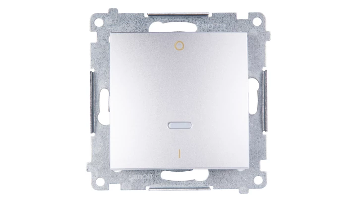 Łącznik 2-biegunowy z podświetleniem LED 10 AX, srebrny mat Simon54 o numerze katalogowym DW2L.01/43 w kategorii Łączniki podtynkowe wielobiegunowe, Łączniki wielobiegunowe. Produkt wyprodukowany przez markę KONTAKT-SIMON, seria SIMON 54.