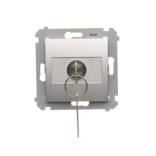 Simon 54 Łącznik żaluzjowy na kluczyk trzypozycyjny /I-0-II/ srebrny mat DPZK.01/43