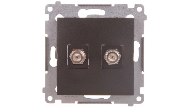 Gniazdo antenowe typu "F" podwójne (moduł). Do instalacji indywidualnych, antracyt, SIMON54 o numerze katalogowym DASF2.01/48 w kategorii Gniazda teleinformacyjne, multimedialne, Łączniki i gniazda instalacyjne. Produkt wyprodukowany przez markę KONTAKT-SIMON, seria SIMON 54.