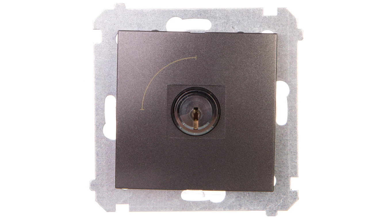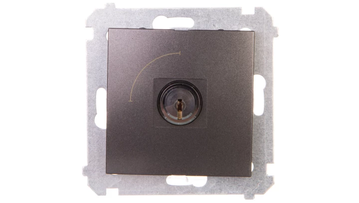 Łącznik na kluczyk jednobiegunowy (moduł) 2 pozycyjny 0-I styk N/O, 5 A, 250~. Możliwość wyjęcia klucza w każdej pozycji, antracyt, SIMON54 o numerze katalogowym DW1K.01/48 w kategorii Łączniki podtynkowe jednobiegunowe, Łączniki jednobiegunowe. Produkt wyprodukowany przez markę KONTAKT-SIMON, seria SIMON 54.