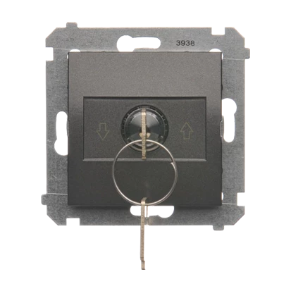 Łącznik na kluczyk roletowy 1-bieg.(moduł) 3 pozycyjny I-0-II" 2 styki N/O, 5A, 250~. Możliwość wyjęcia klucza w każdej pozycji, antracyt, SIMON54 o numerze katalogowym DWZK.01/48 w kategorii Łączniki podtynkowe jednobiegunowe, Łączniki jednobiegunowe. Produkt wyprodukowany przez markę KONTAKT-SIMON, seria SIMON 54.