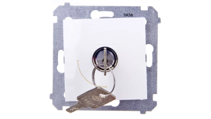 Łącznik na kluczyk jednobiegunowy (moduł) 2 pozycyjny 0-I styk N/O, 5 A, 250~. Możliwość wyjęcia klucza w każdej pozycji, biały, SIMON54 o numerze katalogowym DW1K.01/11 w kategorii Łączniki podtynkowe jednobiegunowe, Łączniki jednobiegunowe. Produkt wyprodukowany przez markę KONTAKT-SIMON, seria SIMON 54.