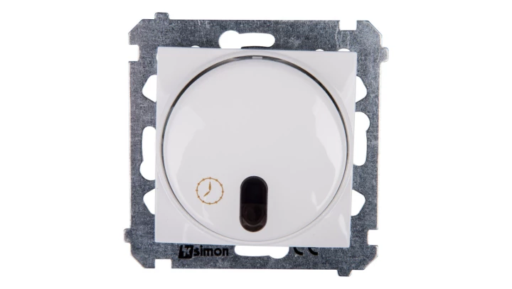 Wyłącznik czasowy z przekaźnikiem. Opóźnienie wyłączenia od 30 sek. do 99 min., biały Simon54 o numerze katalogowym DWC10P.01/11 w kategorii Łączniki pozostałe, akcesoria podtynkowe, Łączniki i gniazda instalacyjne. Produkt wyprodukowany przez markę KONTAKT-SIMON, seria SIMON 54.