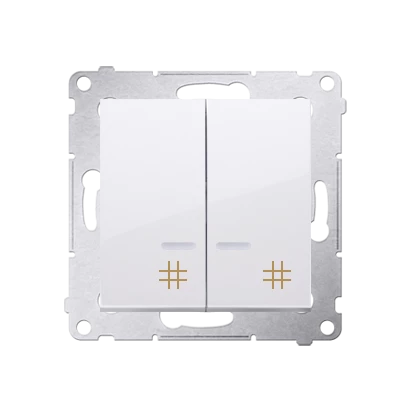 Łącznik krzyżowy podwójny z podświetleniem (moduł) 10AX, 250V~, szybkozłącza, biały, SIMON54 o numerze katalogowym DW7/2L.01/11 w kategorii Łączniki podtynkowe krzyżowe, Łączniki krzyżowe. Produkt wyprodukowany przez markę KONTAKT-SIMON, seria SIMON 54.
