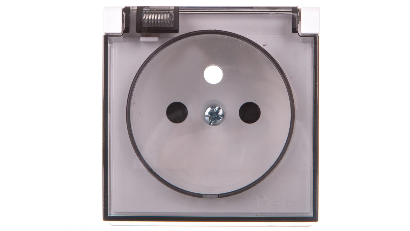 Pokrywa gniazda do wersji IP44 z przesłonami, klapka transparentna, biała Wymagana uszczelka IP44 do ramki SIMON54 o numerze katalogowym DGZ1BUZP/11A w kategorii Plakietki, Ramki, klawisze, plakietki. Produkt wyprodukowany przez markę KONTAKT-SIMON, seria SIMON 54.