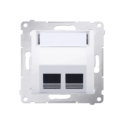 Pokrywa gniazd teleinformatycznych na Keystone skośna podwójna z polem opisowym (moduł). Montaż na łapki i wkręty, biały, SIMON54 o numerze katalogowym DKP2S.01/11 w kategorii Plakietki, Ramki, klawisze, plakietki. Produkt wyprodukowany przez markę KONTAKT-SIMON, seria SIMON 54.