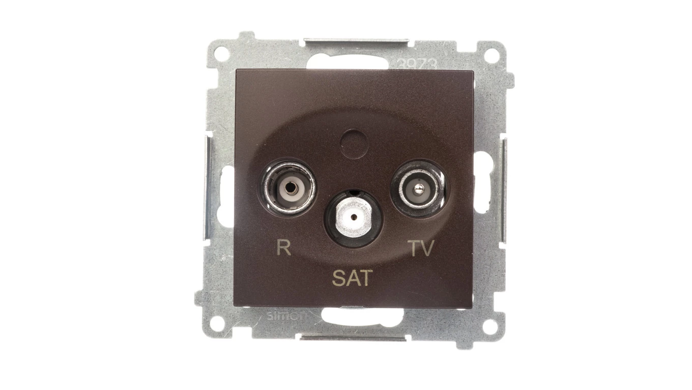 Gniazdo antenowe R-TV AC-SAT przelotowe (moduł), brąz mat (met.) o numerze katalogowym DASP.01/46 w kategorii Gniazda teleinformacyjne, multimedialne, Łączniki i gniazda instalacyjne. Produkt wyprodukowany przez markę KONTAKT-SIMON, seria SIMON 54.
