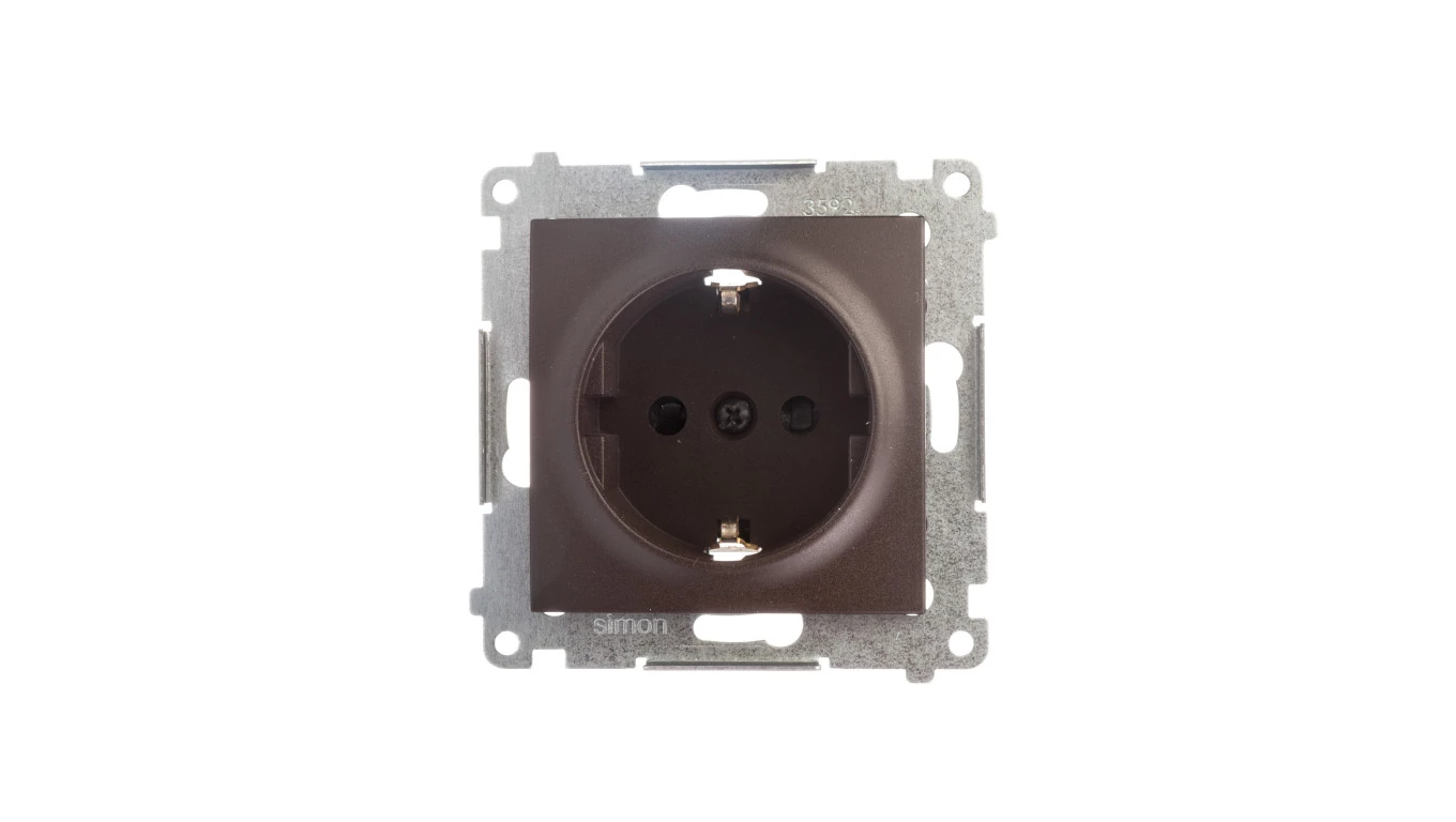 Gniazdo Schuko z przesłonami (moduł) 16A, 250V AC, zaciski śrubowe, brąz mat (met.) o numerze katalogowym DGSZ1Z.01/46 w kategorii Gniazda podtynkowe, Gniazda instalacyjne. Produkt wyprodukowany przez markę KONTAKT-SIMON, seria SIMON 54.