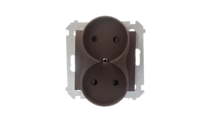 Gniazdo wtyczkowe podwójne bez uziemienia z przesłonami (moduł) 16A, 250V AC, zaciski śrubowe, brąz mat (met.) o numerze katalogowym DG2MZ.01/46 w kategorii Gniazda podtynkowe, Gniazda instalacyjne. Produkt wyprodukowany przez markę KONTAKT-SIMON, seria SIMON 54.