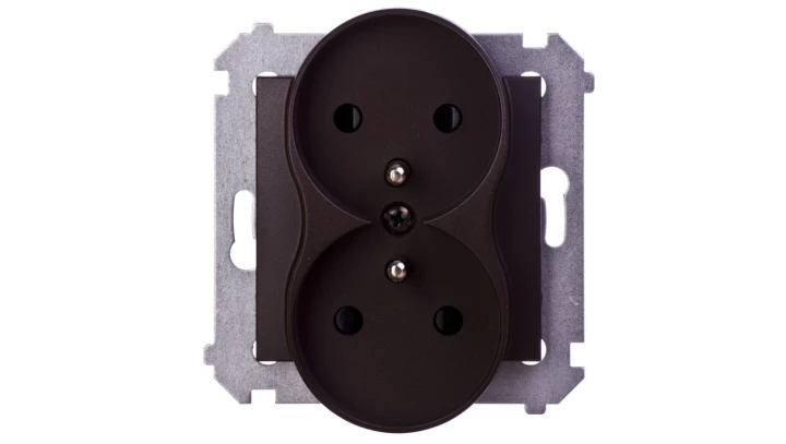 Gniazdo wtyczkowe podwójne z uziemieniem z przesłonami (moduł) 16A, 250V AC, zaciski śrubowe, brąz mat (met.) o numerze katalogowym DGZ2MZ.01/46 w kategorii Gniazda podtynkowe, Gniazda instalacyjne. Produkt wyprodukowany przez markę KONTAKT-SIMON, seria SIMON 54.