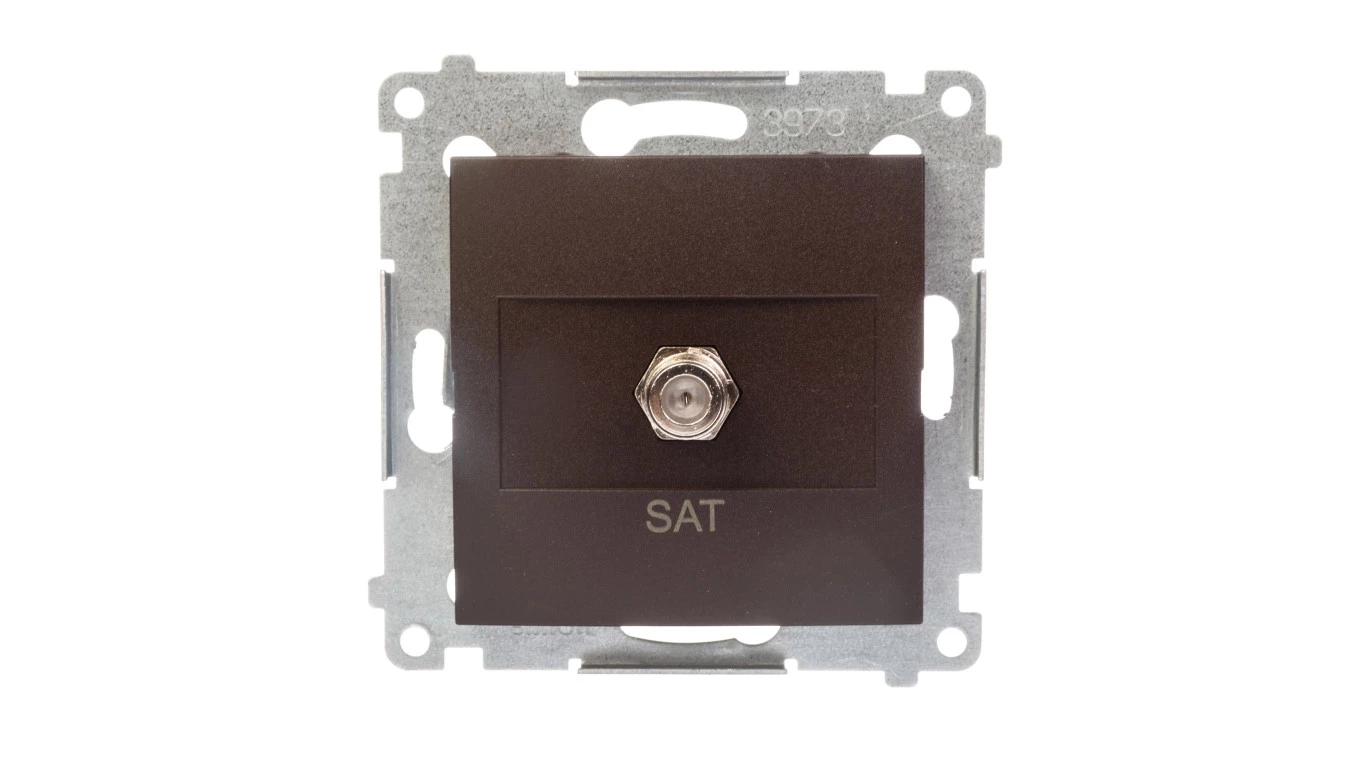 Gniazdo antenowe SAT pojedyncze (moduł). Do instalacji indywidualnych, brąz mat (met.) o numerze katalogowym DASF1.01/46 w kategorii Gniazda teleinformacyjne, multimedialne, Łączniki i gniazda instalacyjne. Produkt wyprodukowany przez markę KONTAKT-SIMON, seria SIMON 54.