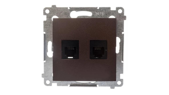 Gniazdo telefoniczne podwójne RJ12 (moduł), brąz mat (met.) o numerze katalogowym DT2.01/46 w kategorii Gniazda teleinformacyjne, multimedialne, Łączniki i gniazda instalacyjne. Produkt wyprodukowany przez markę KONTAKT-SIMON, seria SIMON 54.