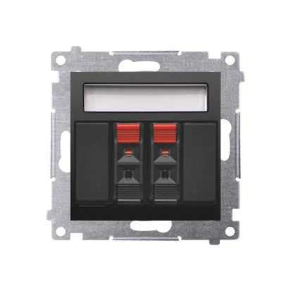Gniazdo głośnikowe 2-krotne z polem opisowym (moduł). Przekrój przewodów dla wejścia i wyjścia 2,5 mm2, czarny mat Simon54 o numerze katalogowym DGL32.01/49 w kategorii Gniazda głośnikowe, Łączniki i gniazda instalacyjne. Produkt wyprodukowany przez markę KONTAKT-SIMON, seria SIMON 54.