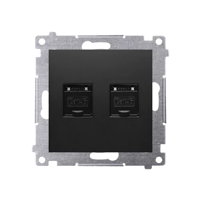 Gniazdo komputerowe podwójne RJ45 kategoria 6, z przesłoną przeciwkurzową (moduł), czarny mat Simon54 o numerze katalogowym D62.01/49 w kategorii Gniazda teleinformacyjne, multimedialne, Łączniki i gniazda instalacyjne. Produkt wyprodukowany przez markę KONTAKT-SIMON, seria SIMON 54.