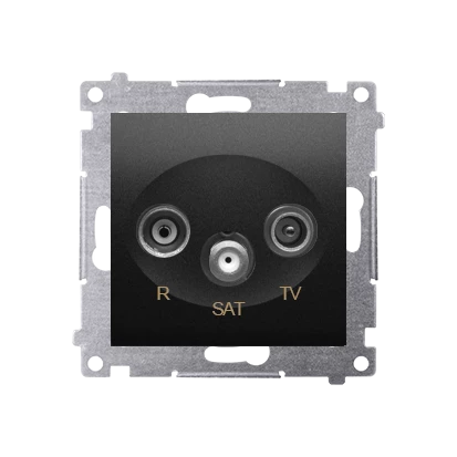 Gniazdo antenowe R-TV-SAT przelotowe (moduł), czarny mat Simon54 o numerze katalogowym DASP.01/49 w kategorii Gniazda teleinformacyjne, multimedialne, Łączniki i gniazda instalacyjne. Produkt wyprodukowany przez markę KONTAKT-SIMON, seria SIMON 54.
