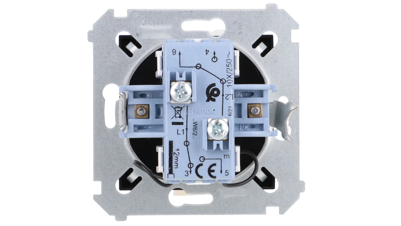 Łącznik schodowy podwójny z podświetleniem (moduł) 10AX, 250V~, zaciski śrubowe, czarny mat Simon54 o numerze katalogowym DW6/2L.01/49 w kategorii Łączniki podtynkowe schodowe, Łączniki schodowe. Produkt wyprodukowany przez markę KONTAKT-SIMON, seria SIMON 54.