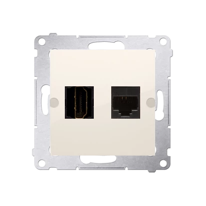 Gniazdo HDMI + RJ45 kat.6. (moduł), kremowy, SIMON54 o numerze katalogowym DGHRJ45.01/41 w kategorii Gniazda teleinformacyjne, multimedialne, Łączniki i gniazda instalacyjne. Produkt wyprodukowany przez markę KONTAKT-SIMON, seria SIMON 54.