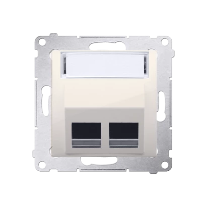 Pokrywa gniazd teleinformatycznych na Keystone skośna podwójna z polem opisowym (moduł). Montaż na łapki i wkręty, kremowy, SIMON54 o numerze katalogowym DKP2S.01/41 w kategorii Plakietki, Ramki, klawisze, plakietki. Produkt wyprodukowany przez markę KONTAKT-SIMON, seria SIMON 54.