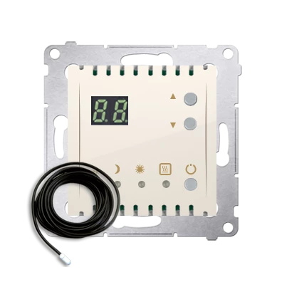 Regulator temperatury z wyświetlaczem z czujnikiem zewnętrznym (moduł) 16(2) A, 230V~, kremowy *W komplecie czujnik zewnętrzny (sonda), SIMON54 o numerze katalogowym DTRNSZ.01/41 w kategorii Osprzęt analogowy, Regulatory, termostaty, programatory. Produkt wyprodukowany przez markę KONTAKT-SIMON, seria SIMON 54.
