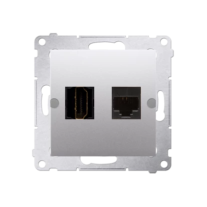 Gniazdo HDMI + RJ45 kat.6. (moduł), srebrny mat, SIMON54 o numerze katalogowym DGHRJ45.01/43 w kategorii Gniazda teleinformacyjne, multimedialne, Łączniki i gniazda instalacyjne. Produkt wyprodukowany przez markę KONTAKT-SIMON, seria SIMON 54.