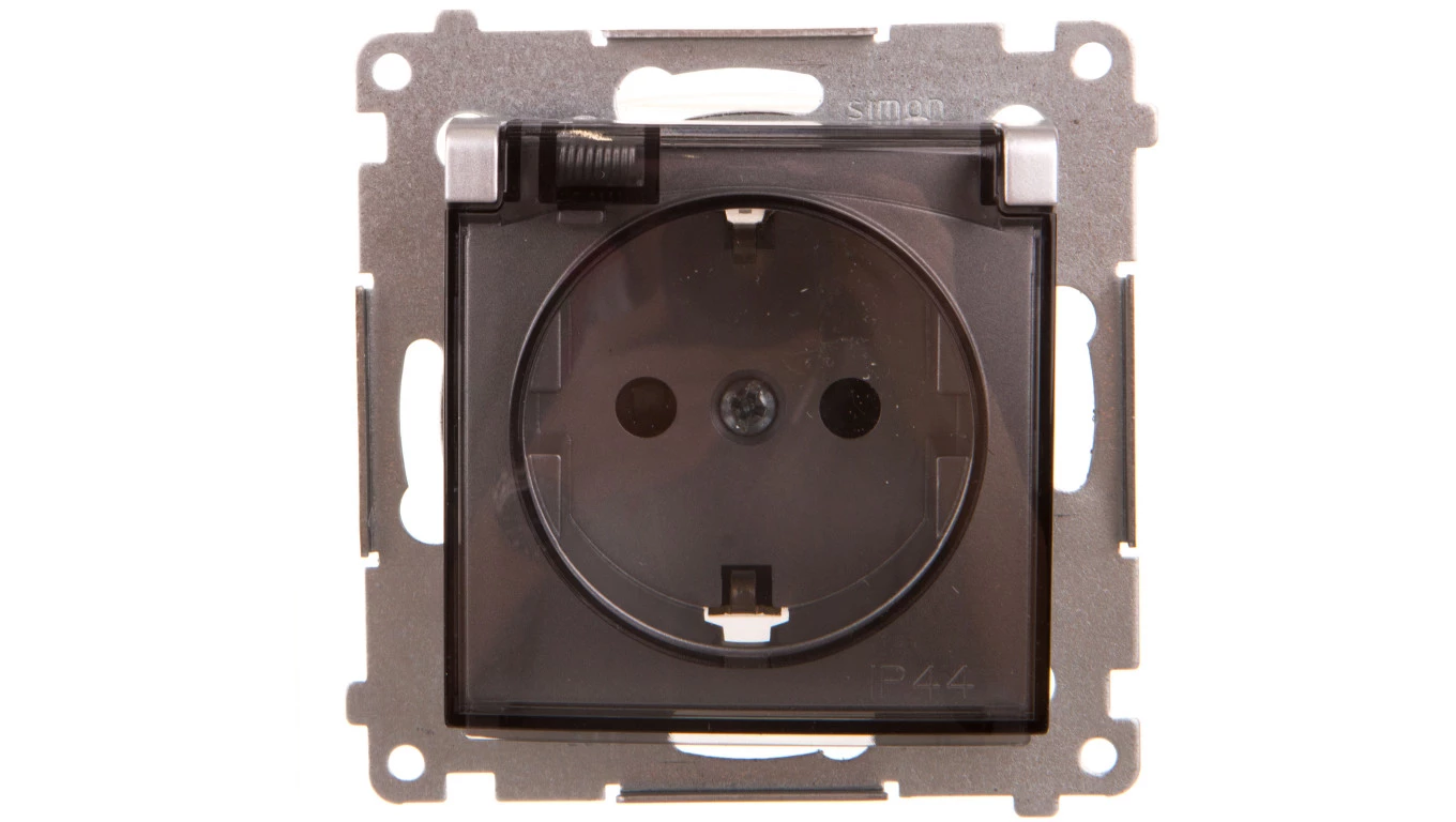 Simon 54 Gniazdo bryzgoszczelne z/u IP44 z klapką transparentną antracyt DGZ1BZ.01/48A