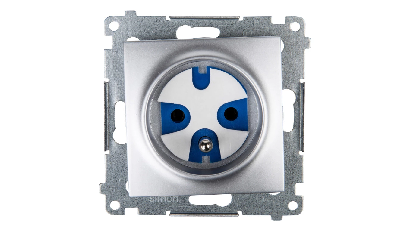 SIMON 54 MODUŁ SREBRNY MAT GNIAZDO 1X Z/U DATA Z KLUCZEM ZACISKI ŚRUBOWE 16A 250V