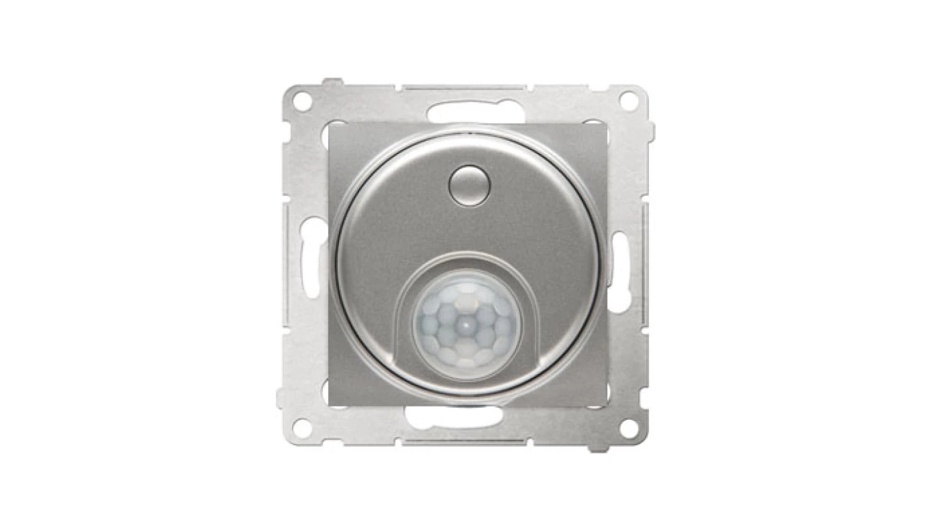 Wyłącznik z czujnikiem ruchu tranzystorowy 20-500 W, srebrny mat Simon54 o numerze katalogowym DCR10T.01/43 w kategorii Łączniki pozostałe, akcesoria podtynkowe, Łączniki i gniazda instalacyjne. Produkt wyprodukowany przez markę KONTAKT-SIMON, seria SIMON 54.