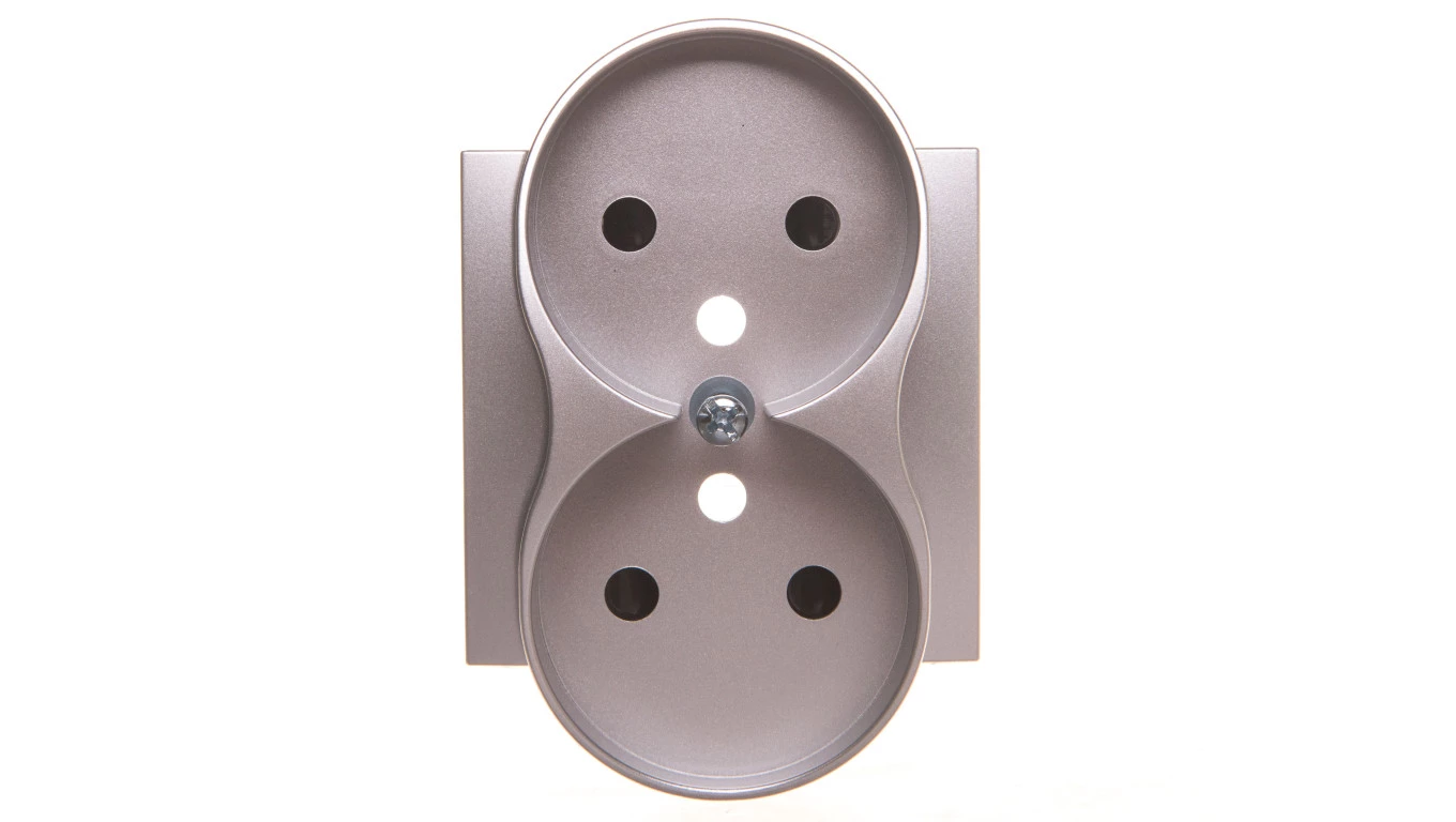 Pokrywa gniazda podwójnego z przesłonami do ramek PREMIUM, srebrny mat SIMON54 o numerze katalogowym DGZ2MZP/43 w kategorii Plakietki, Ramki, klawisze, plakietki. Produkt wyprodukowany przez markę KONTAKT-SIMON, seria SIMON 54.