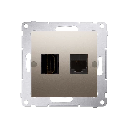 Gniazdo HDMI + RJ45 kat.6. (moduł), złoty mat, SIMON54 o numerze katalogowym DGHRJ45.01/44 w kategorii Gniazda teleinformacyjne, multimedialne, Łączniki i gniazda instalacyjne. Produkt wyprodukowany przez markę KONTAKT-SIMON, seria SIMON 54.