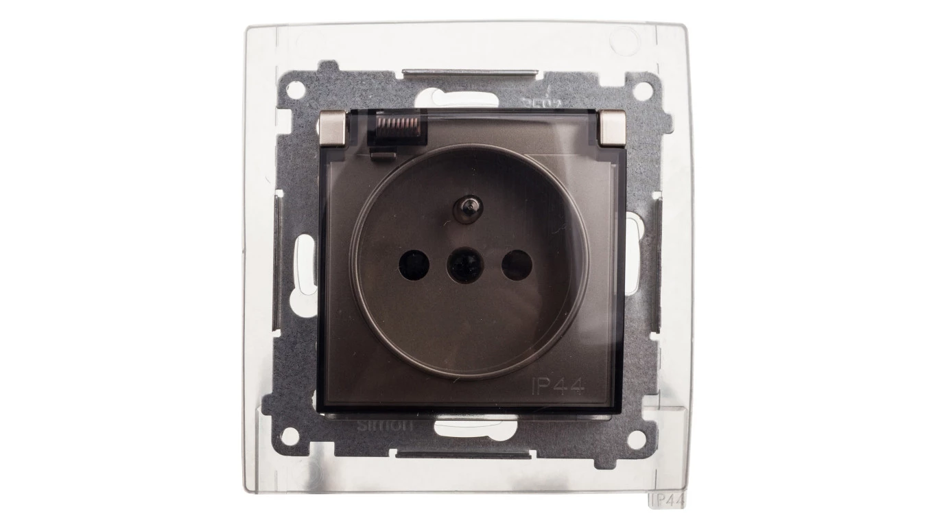 Simon 54 Gniazdo bryzgoszczelne z/u IP44 z klapką transparentną antracyt DGZ1BZ.01/48A