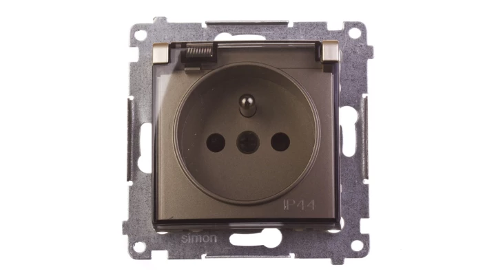 Simon 54 Gniazdo bryzgoszczelne z/u IP44 z klapką transparentną antracyt DGZ1BZ.01/48A
