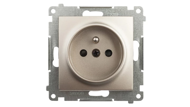 Gniazdo z uziemieniem i przesłonami, złoty mat Simon54 o numerze katalogowym DGZ1Z.01/44 w kategorii Gniazda podtynkowe, Gniazda instalacyjne. Produkt wyprodukowany przez markę KONTAKT-SIMON, seria SIMON 54.