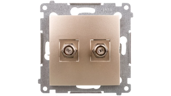 Gniazdo antenowe typu "F" podwójne (moduł), do instalacji indywidualnych, złoty mat o numerze katalogowym DASF2.01/44 w kategorii Pozostałe, Niesklasyfikowane. Produkt wyprodukowany przez markę KONTAKT-SIMON.