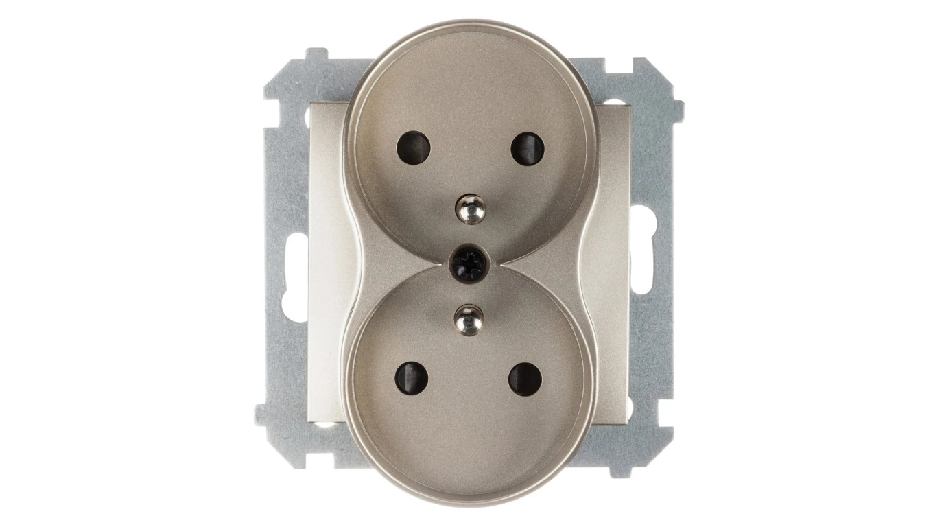 SIMON 54 MODUŁ ZŁOTY MAT GNIAZDO 2X Z/U Z PRZESŁONAMI ZACISKI ŚRUBOWE 16A 250V