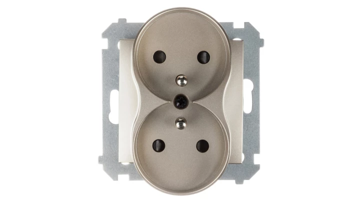 Gniazdo podwójne z uziemieniem przesłona styków, złoty mat Simon54 o numerze katalogowym DGZ2MZ.01/44 w kategorii Gniazda podtynkowe, Gniazda instalacyjne. Produkt wyprodukowany przez markę KONTAKT-SIMON, seria SIMON 54.