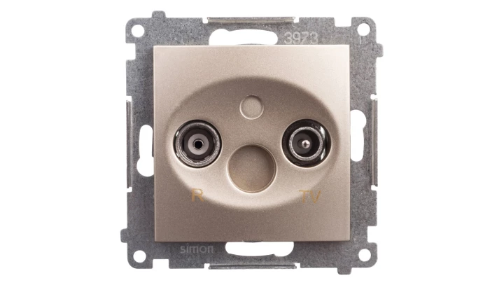 Gniazdo RTV końcowe separowane tłum. 1dB, złoty mat Simon54 o numerze katalogowym DAK.01/44 w kategorii Gniazda teleinformacyjne, multimedialne, Łączniki i gniazda instalacyjne. Produkt wyprodukowany przez markę KONTAKT-SIMON, seria SIMON 54.