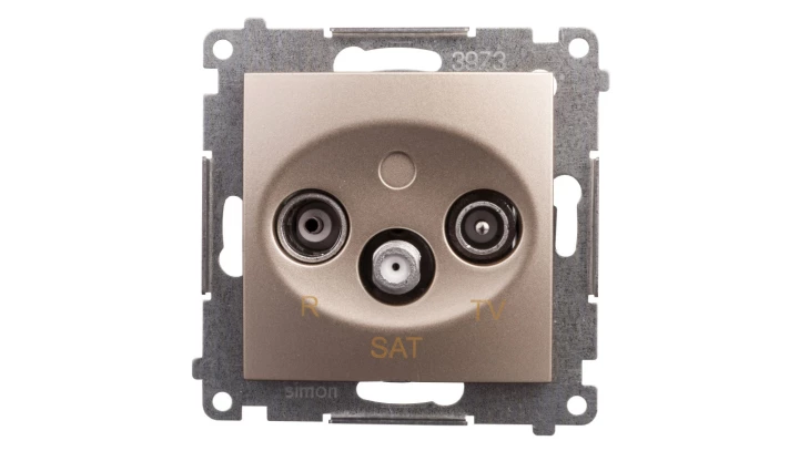 Gniazdo RTV-SAT końcowe/zakończeniowe tłum. RTV 1.0dB SAT 1.0dB, złoty mat Simon54 o numerze katalogowym DASK.01/44 w kategorii Gniazda teleinformacyjne, multimedialne, Łączniki i gniazda instalacyjne. Produkt wyprodukowany przez markę KONTAKT-SIMON, seria SIMON 54.