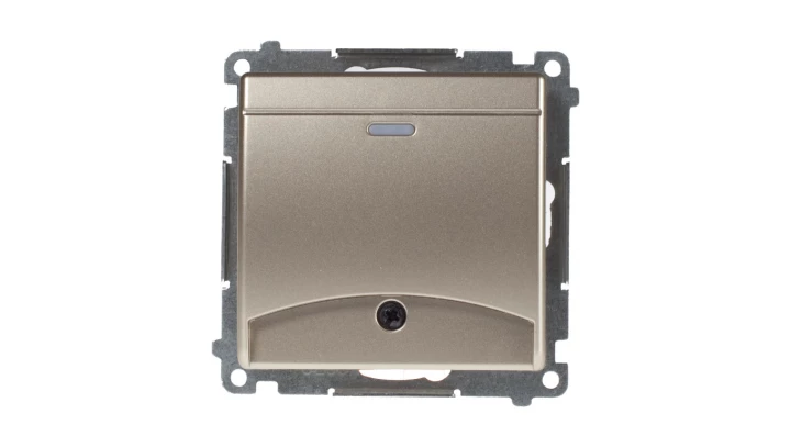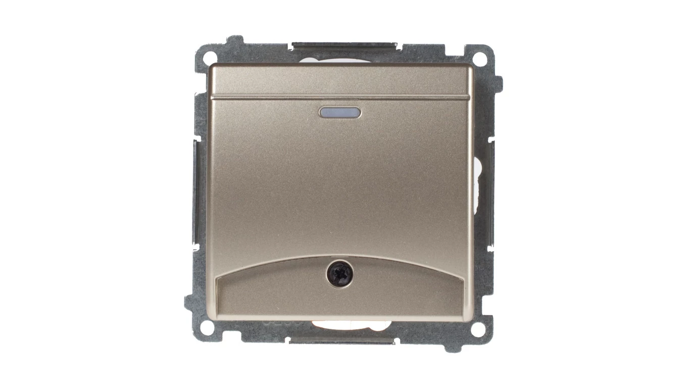 Łącznik hotelowy. Prąd znamionowy 10 (2) A . Wymagane jest zastosowanie przekaźnika/stycznika, złoty mat Simon54 o numerze katalogowym DWH1.01/44 w kategorii Łączniki hotelowe, Łączniki i gniazda instalacyjne. Produkt wyprodukowany przez markę KONTAKT-SIMON, seria SIMON 54.