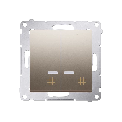 Łącznik krzyżowy podwójny z podświetleniem (moduł) 10AX, 250V~, szybkozłącza, złoty mat, SIMON54 o numerze katalogowym DW7/2L.01/44 w kategorii Łączniki podtynkowe krzyżowe, Łączniki krzyżowe. Produkt wyprodukowany przez markę KONTAKT-SIMON, seria SIMON 54.