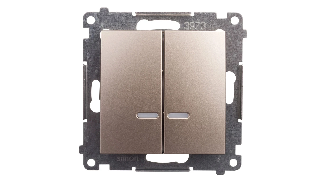 SIMON 54 MODUŁ ZŁOTY MAT ŁĄCZNIK SERYJNY IP44 PODŚWIETLANY LED ZACISKI SPRĘŻYNOWE 10AX 250V