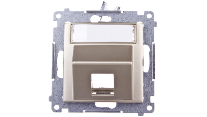 Pokrywa gniazd teleinformatycznych na Keystone skośna pojedyncza z polem opisowym, złoty mat Simon54 o numerze katalogowym DKP1S.01/44 w kategorii Plakietki, Ramki, klawisze, plakietki. Produkt wyprodukowany przez markę KONTAKT-SIMON, seria SIMON 54.